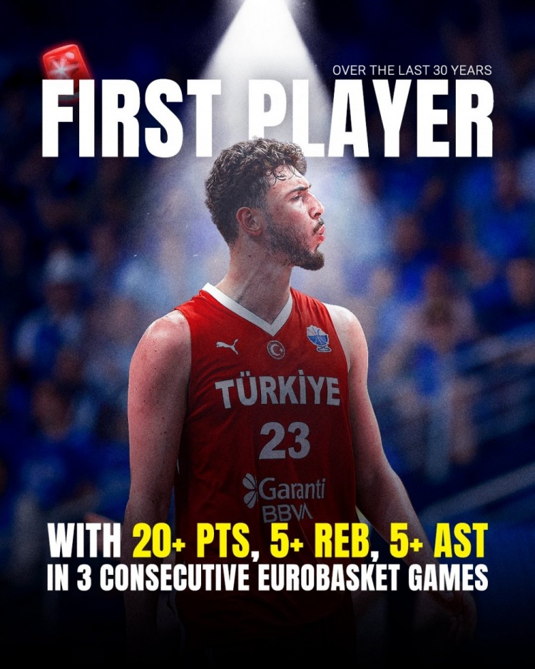 至此,申京已连续三场贡献至少20分5篮板5助攻,成为近30年来欧锦赛首位达成该纪录的球员。