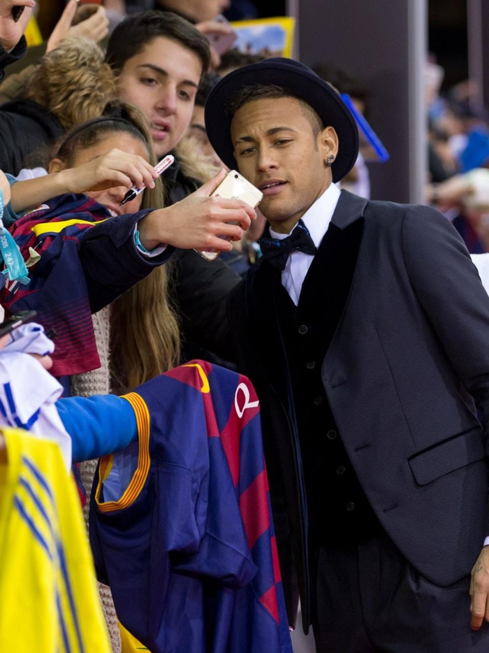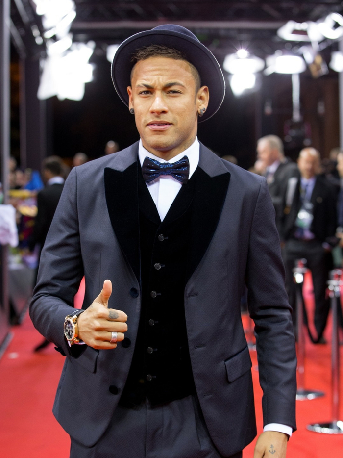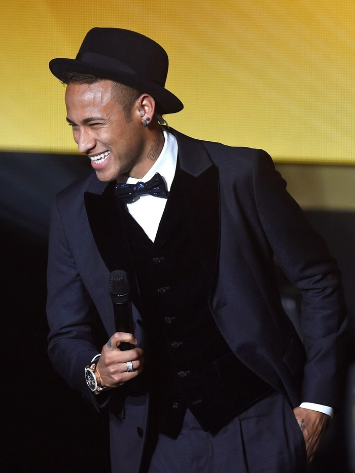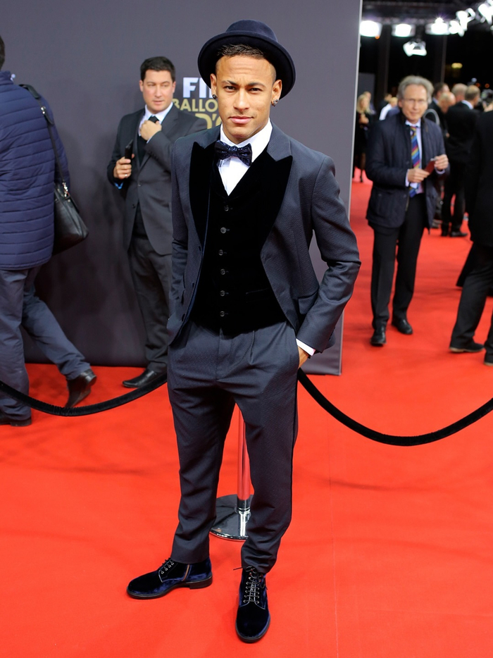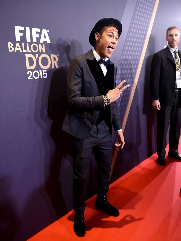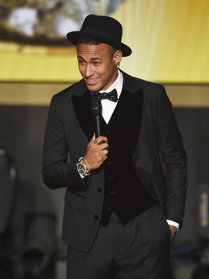 当内马尔戴着那顶帽子前往2015年金球奖晚会时。#足球#